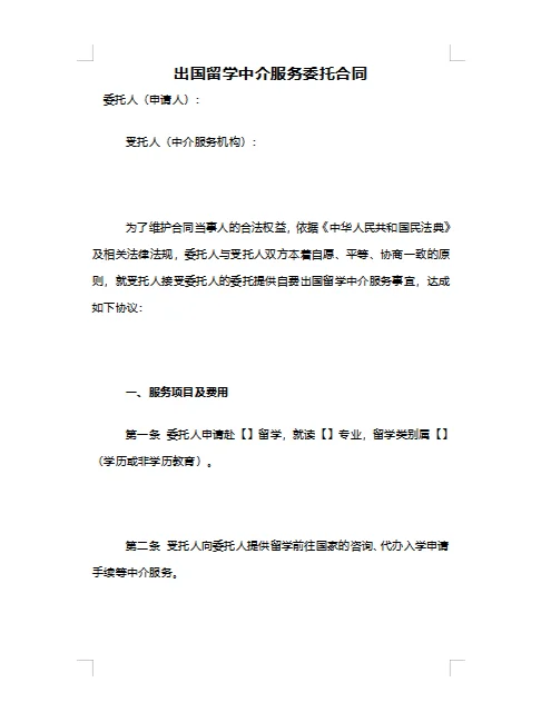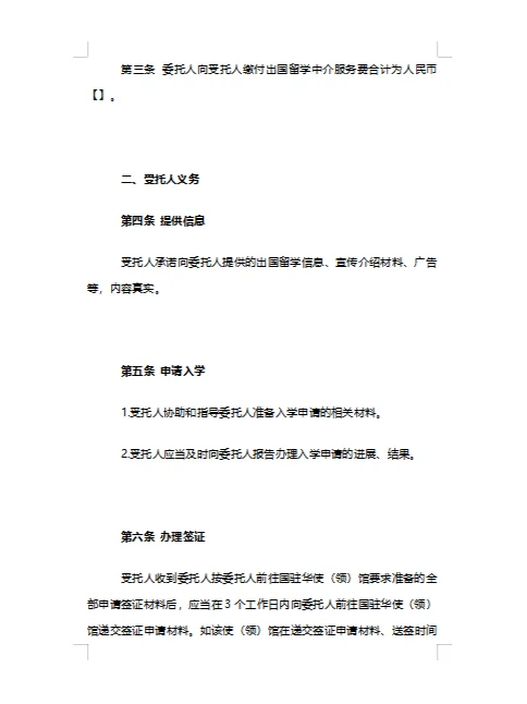 留学中介服务佣金合同起草要点揭晓 今天我们在这里聊一聊留学中介服务合同的起草。留学是人生大事,选择合适的中介更是至关重要!那么,一份可靠的留学中介服务合同应该包括哪些要点呢来和我一起看一看! 1、 明确双方的基本情况和委托事项 在签订合同之初,首先要明确委托人(你)和受托人(中介人)的基本信息,包括他们的姓名、联系方式等。接下来,要提供一份详细的委托事项清单,例如申请哪所学校、哪个专业、需要提供什么服务。这样,双方才能清楚地了解彼此的权利和义务。 2、 就服务费和支付方式达成一致 中介服务不是免费的!因此,合同必须规定服务费的金额、支付方式和支付时间。记得要注意是否有隐藏费用或额外费用,以免日后发生纠纷。 3、 明确服务截止日期和时间表安排 出国留学是一个耗时的过程,因此合同应规定每个阶段的服务期和具体进度安排。这样,你就可以清楚地知道什么时候准备什么材料,什么时候收到报价! 4、 确保信息安全和隐私保护 在申请过程中,您可能会提供大量个人信息和隐私。因此,合同必须明确说明中介机构如何保护您的信息安全和隐私,防止信息泄露或滥用。 5、 违约责任的设定及对策 如果中介机构未能按照合同约定提供服务,或者提供的服务不符合您的期望,该怎么办至此,合同中的违约责任条款就发挥了作用!同时,有必要就争议解决方法达成一致,如谈判、调解或诉讼。 6、 注意合同的修改和终止条款 有时候,计划跟不上变化。如果出于某种原因你需要更改或终止佣金合同怎么办合同中必须有相关条款来规定对这种情况的处理。 7、 其他补充条款 除了上述要点,您还可以根据实际需要添加其他补充条款,如中介机构提供的额外服务、双方之间的其他协议等。记得仔细阅读合同内容,确保没有遗漏或误解! 总之,留学代理服务委托合同是保护您权益的重要文件!在签署之前,重要的是要仔细阅读和理解合同的内容,以确保您的权利得到充分保护。如果你有什么不明白的地方,一定要及时咨询专业人士! 提示:在选择中介时,要谨慎选择合格、有经验、信誉良好的中介。同时,在签订合同之前,最好请周围的朋友或家人帮忙检查,确保合同的合法性和有效性。
