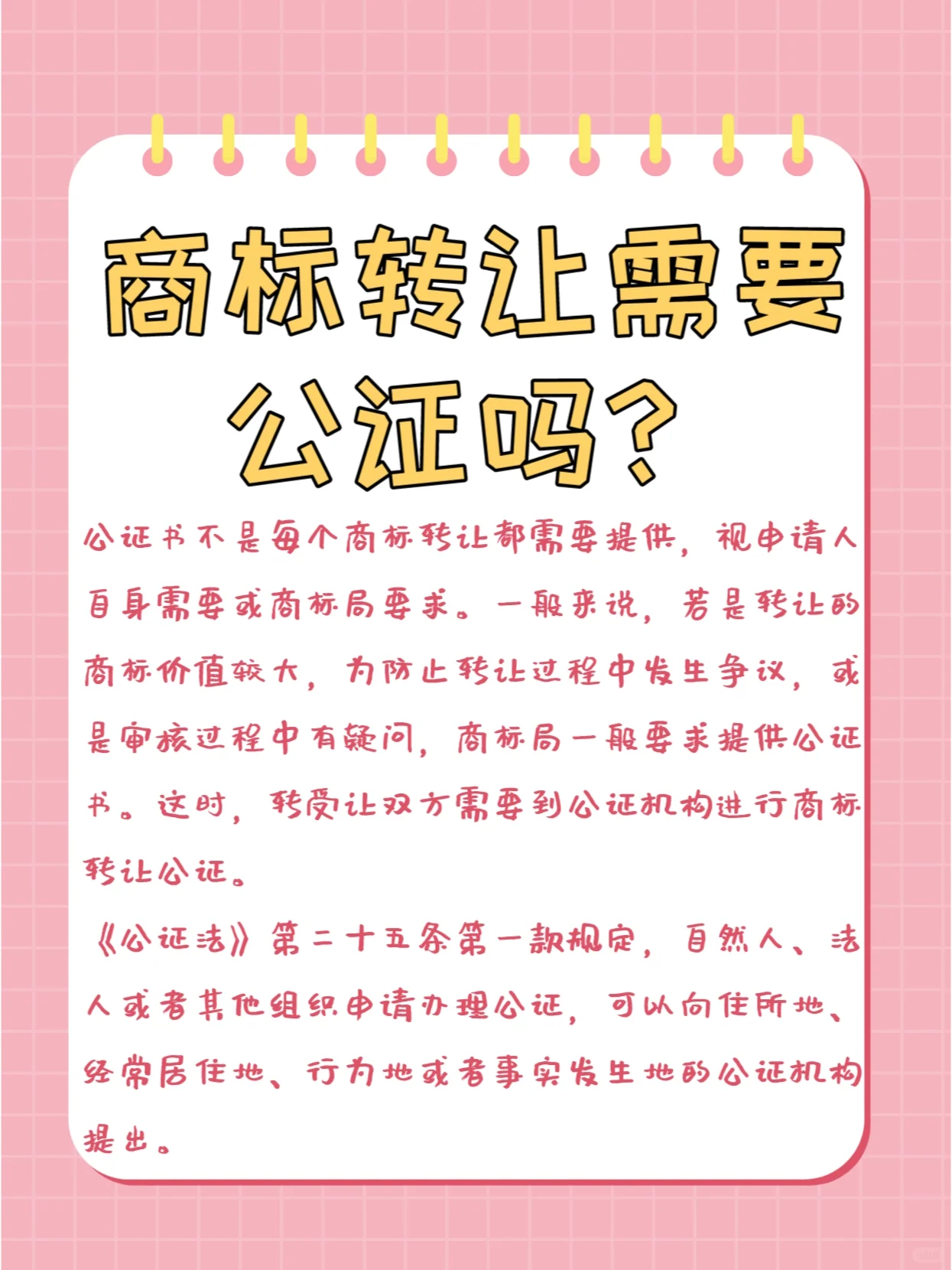 根据申请人自身的需要或商标局的要求,每次商标转让都不需要公证证书。一般来说,如果转让的商标具有重大价值,为了防止转让过程中的争议或审查过程中的疑虑,商标局通常要求提供公证证书。此时,受让人和受让人需要到公证处进行商标转让公证。