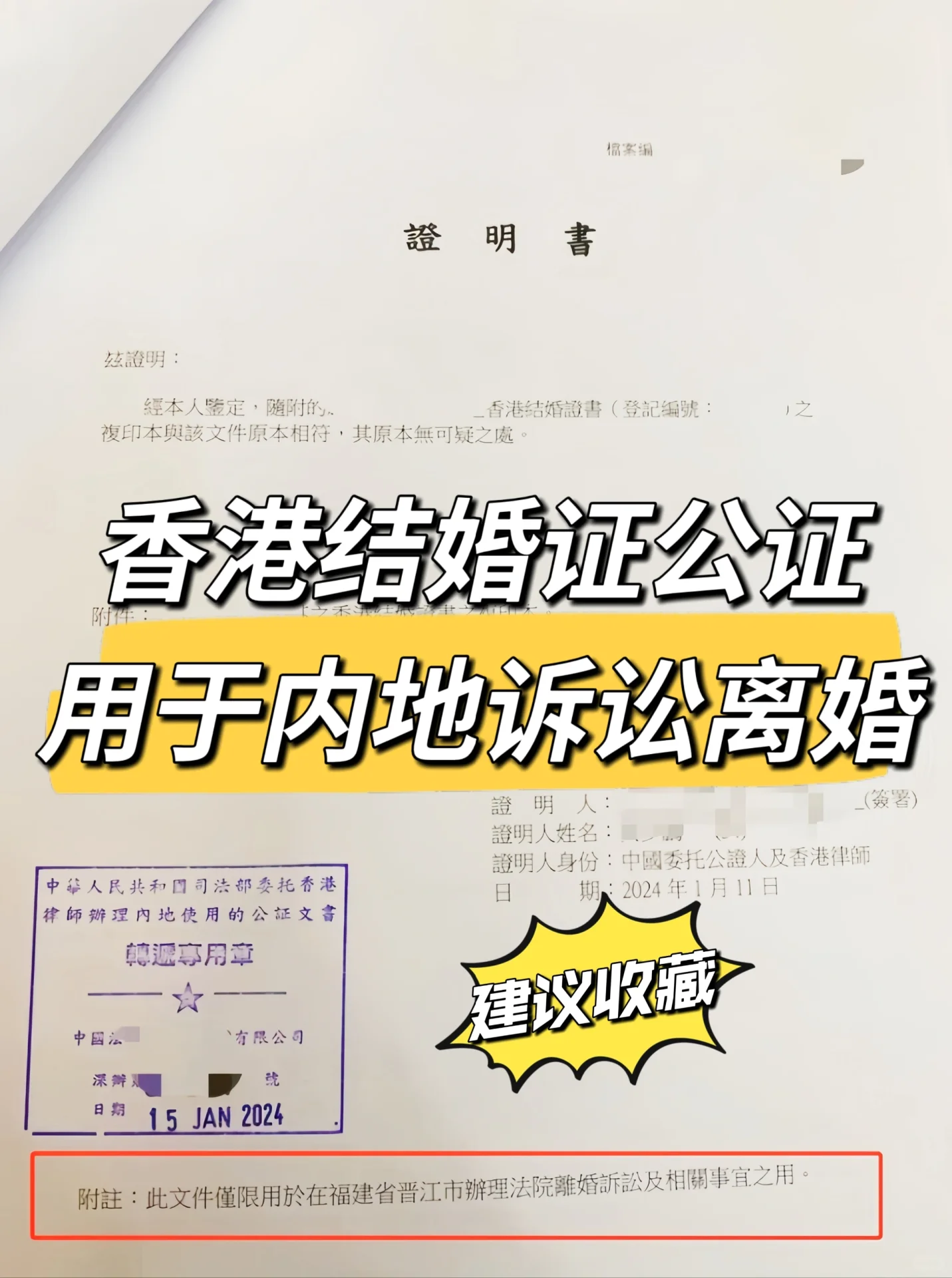 香港结婚证公证用于内地诉讼离婚